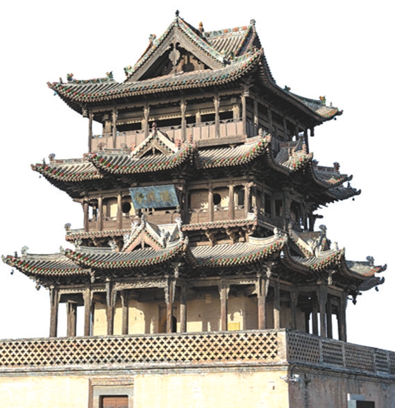 山西運城萬榮縣秋風(fēng)樓的每一層都裝飾著懸魚