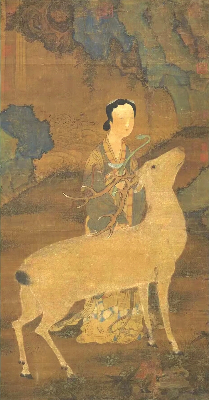 在傳統(tǒng)文化中,鹿是一種有神力的動(dòng)物,神話傳說中鹿往往是神仙的坐騎。李白一生尋仙問道,其《夢(mèng)游天姥吟留別》中有“且放白鹿青崖間,須行即騎訪名山”之名句。南極仙翁的白鹿,不僅被繪制在壽畫里,在文學(xué)中也大放異彩?!段饔斡洝分械陌茁咕褪菈坌悄蠘O仙翁的坐騎,偷得壽星的蟠龍拐杖后下凡為妖。在《白蛇傳》里,白娘子獨(dú)闖昆侖山,欲盜取起死回生的靈芝仙草,遭遇鶴、鹿二仙童阻攔。清代神魔小說《女仙外史》中的鹿童化為道人,下凡后為禍人間。屢破票房紀(jì)錄的動(dòng)畫電影《哪吒2》,其中的反派之一鹿童,是無量仙翁的大弟子,擔(dān)任捕妖隊(duì)頭領(lǐng),戲份頗重。