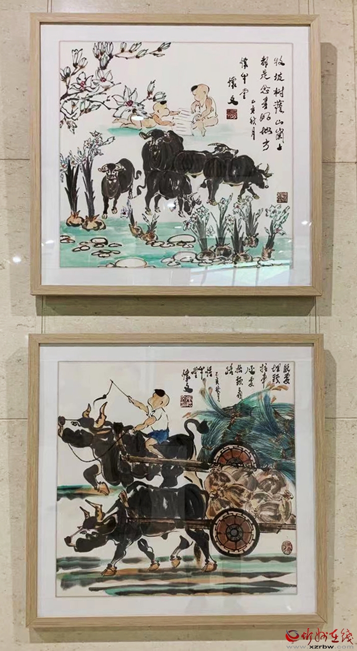 上千平方米的展廳內(nèi),299幅尺幅不同、姿態(tài)各異的以牛為表現(xiàn)主題的國畫作品,組成了一個(gè)牛的世界,多角度展現(xiàn)了牛的精神。
