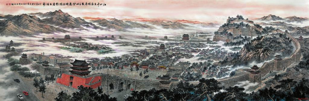 在堅(jiān)持不懈的學(xué)習(xí)和創(chuàng)作過程中,殷渭凌逐漸意識到,書畫藝術(shù)有其自身規(guī)律,并不存在固定模式,對于一個(gè)書畫家來說,確定個(gè)人藝術(shù)走向非常重要,想要表現(xiàn)的主題、內(nèi)容、情感最終會決定創(chuàng)作本身的價(jià)值。也正是清楚了這一點(diǎn),殷渭凌將自己的創(chuàng)作素材鎖定在熟悉和熱愛的故土上。他從家鄉(xiāng)的自然造化中選取創(chuàng)作對象,提煉感情和思想,然后加以調(diào)整、升華,最終呈現(xiàn)給觀者,讓大家看到了獨(dú)具韻味的黃河、太行、長城、古鎮(zhèn)、雄關(guān)、窯洞、高原、古剎、佛塔等。