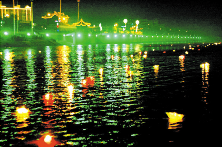 中元節(jié)這一天也有放河燈的習(xí)俗,最早源于印度佛教,傳入中國,是由寺院興起,起初有盂蘭盆會(huì),在寺院里,誦經(jīng)供食,焚化紙船,謂之法船,可以“渡出冥孤獨(dú)之魂”,也是一種宗教儀式。后來這種形式,逐漸傳入民間社會(huì),有了在河流中放河燈的習(xí)俗。試想天上人間,天上明月高空,繁星點(diǎn)點(diǎn),地下一排排的紙船,在暗夜的黃河流水中猶如萬點(diǎn)螢光,向著遙遠(yuǎn)的神秘方向漂流,讓人產(chǎn)生一種無限的想象,因此,在中元節(jié)放河燈,就是自己和心靈的一種對(duì)話,也是活著的人們對(duì)逝去的人們的一種懷念方式。當(dāng)然河曲河燈節(jié),在祭祖、祭禹的同時(shí),也加入了特定群體。那些在黃河水患中離去的人,那些在戰(zhàn)亂中逝去的人,那些在走西口謀生中失蹤的人,都成為被祭奠的亡靈,體現(xiàn)了其節(jié)日的地域性。