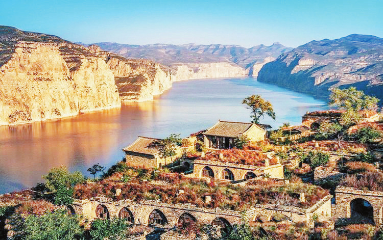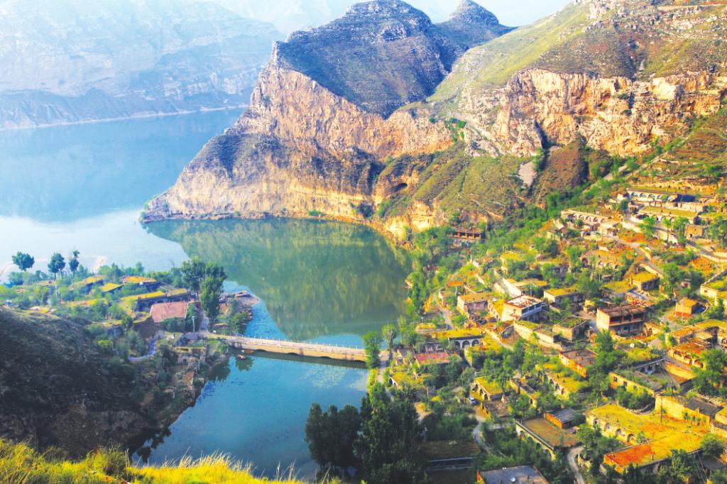 在黃河上形如半島的一個回水灣上,清清的關(guān)河水從東邊流來,匯入了黃河。對面是高山和村莊上的排排石頭窯洞,一層一層地排列在緩坡的綠蔭里。河邊有果圃,河中有捕魚船,關(guān)河上還有石拱平面橋,過得去卡車,更過得去羊馬驢騾。從山水形勢上看,這里是高崖深壘,有渡口,從大面上看是一個死角,然而又是一個興于明盛于清的重要水旱碼頭,有長城、有烽火臺和古堡??滴跛氖辏ü?701年)西北放墾,這里成為北糧進入晉地的轉(zhuǎn)運點。北上的晉商也由此進入黃河上游,關(guān)河口也就成了糧食、茶葉、布匹和皮毛、牲畜交流互換的水上集散地。