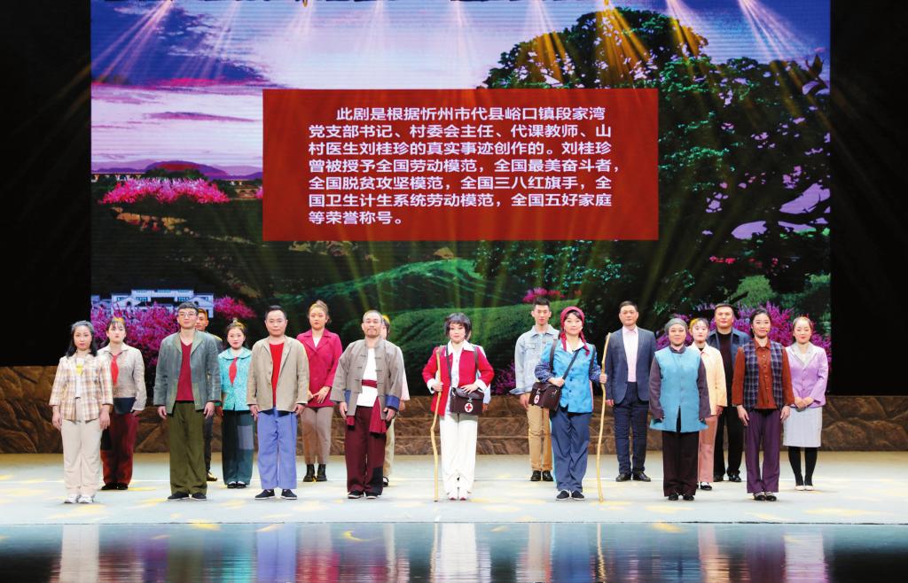 得知自己飾演女主角柳玉珍,演員蘇瑞芳背后做了很多功課,親自到段家灣與原型劉桂珍“零距離”接觸。聽完桂珍大姐的故事,蘇瑞芳內(nèi)心無比震撼,為了更好地塑造角色,一有空閑就拉著搭檔“開小灶”,反復(fù)打磨動(dòng)作?!拔枧_(tái)上的每個(gè)人物都有生活原型,每段劇情都是根據(jù)真實(shí)事件改編而來。”蘇瑞芳動(dòng)容地說,“現(xiàn)實(shí)中桂珍大姐遇到的情況可能比舞臺(tái)上表現(xiàn)得更困難,但她卻始終不忘初心,扎根農(nóng)村,身兼‘四職’,承擔(dān)起脫貧攻堅(jiān)領(lǐng)頭雁、治病救人好醫(yī)生、教書育人好老師、扎根基層好黨員等多重角色,以引領(lǐng)村民脫貧致富為己任,忠實(shí)踐行一名共產(chǎn)黨員的神圣使命。她身上的優(yōu)秀品質(zhì)值得我們每一個(gè)人學(xué)習(xí),我為自己能夠有機(jī)會(huì)飾演她感到驕傲自豪!”