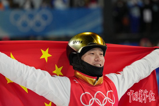 本報(bào)河北崇禮2月16日電(中青報(bào)·中青網(wǎng)記者 梁璇)滑行、起跳、旋轉(zhuǎn)、落地,32歲的齊廣璞今晚首次在冬奧賽場上順利完成了向后翻騰三周轉(zhuǎn)體1800度,這個(gè)難度系數(shù)高達(dá)5.0的動(dòng)作讓他以129.00分的成績奪得自由式滑雪男子空中技巧冠軍。