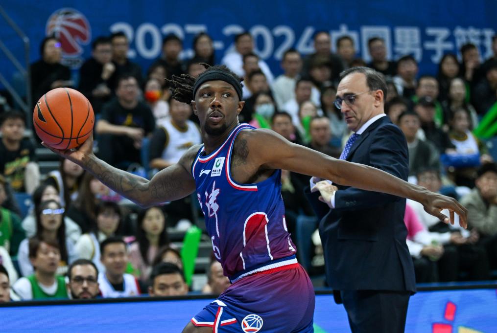 11月6日,北控球員鄒雨宸(左)在比賽中。新華社記者 雒圓 攝