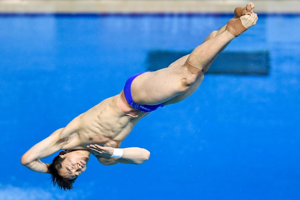 11月22日,湖北浩沙隊選手王宗源在男子3米跳板比賽中。新華社記者伍志尊攝