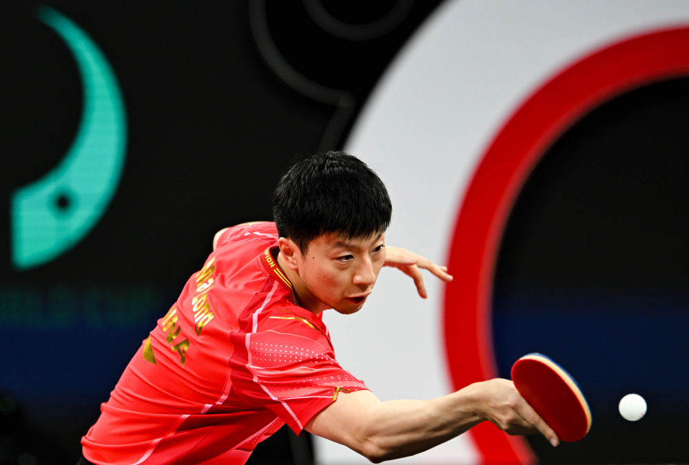 12月7日,中國(guó)隊(duì)選手馬龍?jiān)谀袉伪荣愔?。新華社記者 王曦 攝