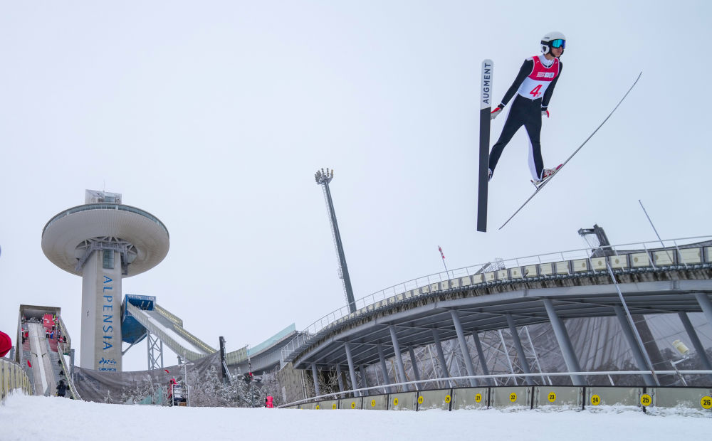 1月21日,跳臺(tái)滑雪混合團(tuán)體賽決賽中,中國組合任浩然、鄭鵬博、翁楊寧和唐嘉鴻以543.2分的成績(jī)獲得第十二名,圖為任浩然在比賽中。新華社記者 張笑宇 攝