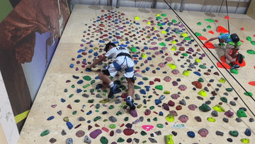 目光如炬地攀爬在室內(nèi)巖壁上
