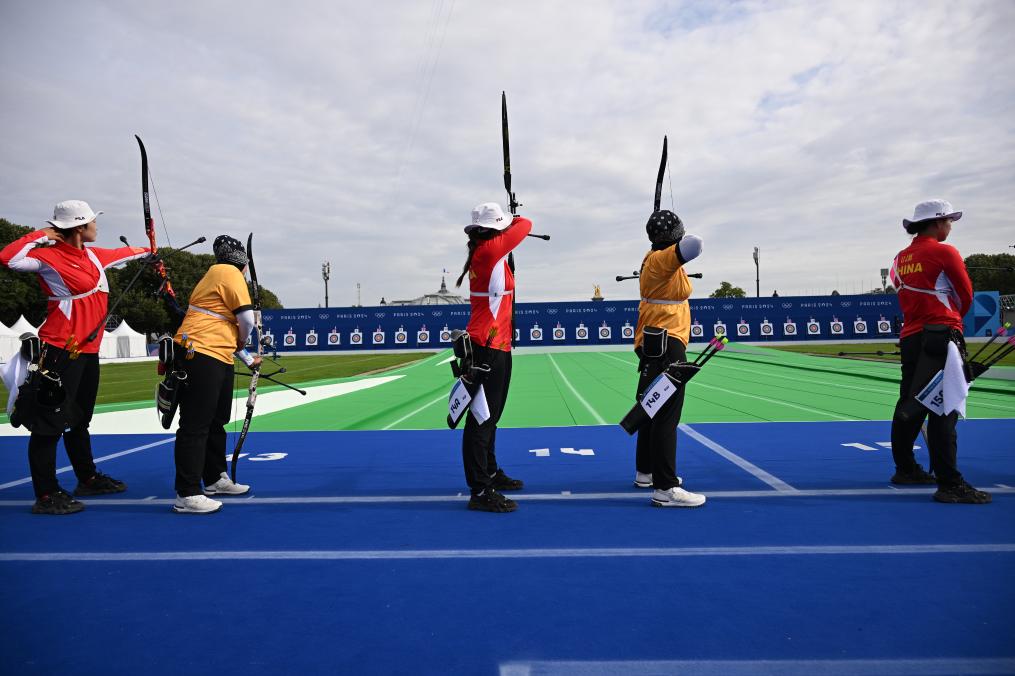 當(dāng)日上午,巴黎榮軍院上空晴空朗朗,64名女子射箭運(yùn)動員在這處歷史建筑旁展開爭奪。中國隊(duì)派出楊曉蕾、安琦軒、李佳蔓3人出戰(zhàn)女子個人排名賽。