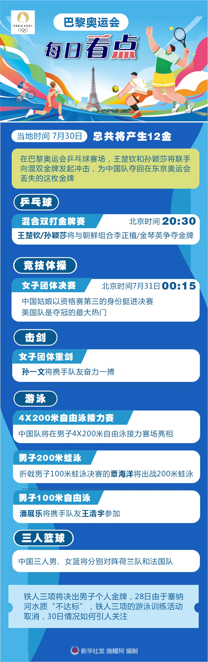 | 巴黎奧運(yùn)會|30日看點(diǎn):“莎頭組合”沖! |