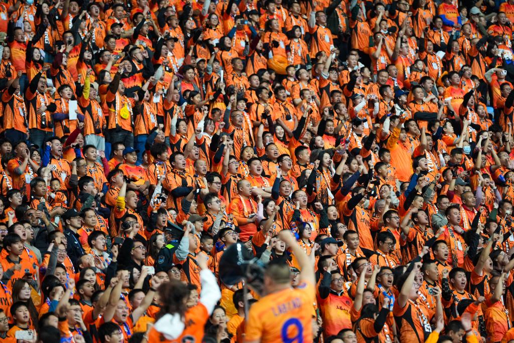 在2月22日進行的2025賽季中超聯(lián)賽首輪云南玉昆隊對陣北京國安隊的比賽中,云南玉昆隊球迷在現(xiàn)場加油助威。新華社記者陳欣波攝
