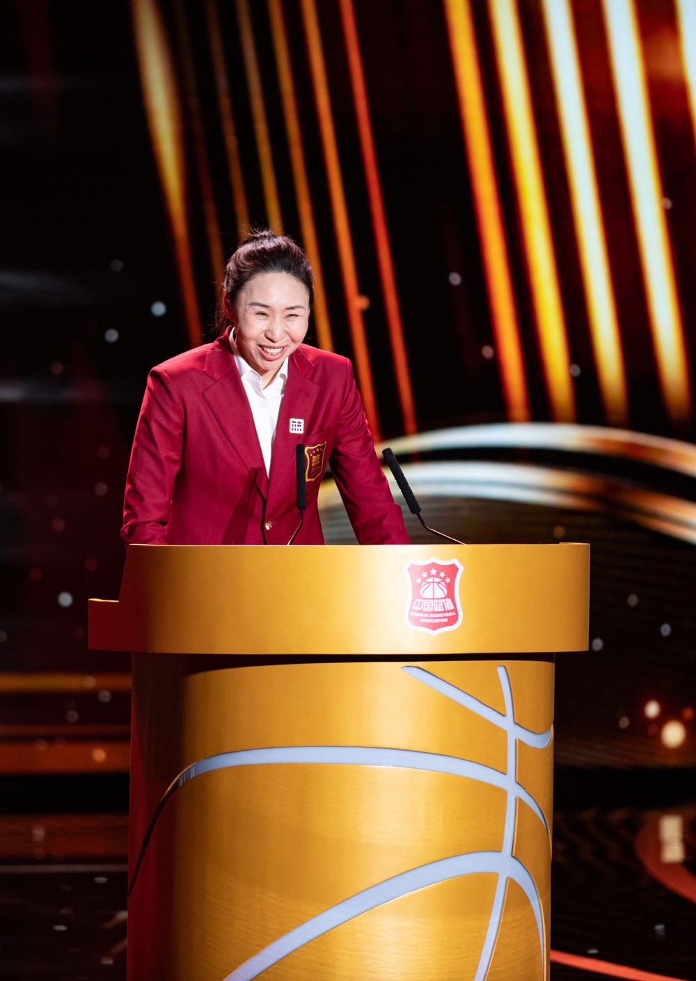 3月23日,中國籃球名人堂入堂人物“杰出女運(yùn)動員”苗立杰在入堂儀式上演講。新華社記者 陳鐘昊 攝