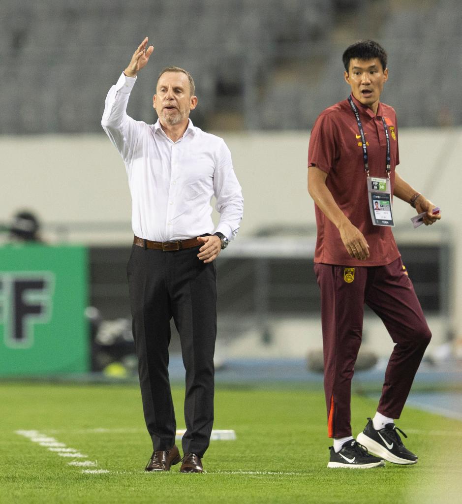 7月7日,中國(guó)隊(duì)代理主教練德?lián)P·久爾杰維奇(左)在場(chǎng)邊指揮。新華社發(fā)(全休相 攝)