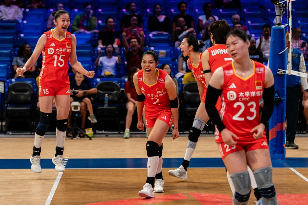 決定勝負(fù)的第五局,中國隊(duì)一度以10:7領(lǐng)先,但多米尼加隊(duì)追至13平。面對(duì)令人屏息的局末關(guān)鍵分,中國隊(duì)干脆利落連得兩分,以15:13笑到最后。