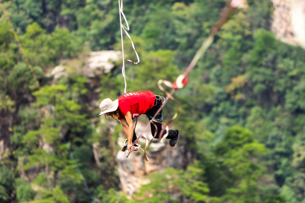 至今,張家界已連續(xù)舉辦八屆黃石寨高空扁帶賽,吸引眾多國(guó)內(nèi)外扁帶愛好者在絕壁間一決高下。近年來,張家界國(guó)家森林公園圍繞“旅游+體育”模式,舉辦了黃石寨高空扁帶賽、自行車極限速降賽、百龍?zhí)焯莞呖帐幚K挑戰(zhàn)等眾多賽事,將張家界自然風(fēng)光與體育相結(jié)合,積極推動(dòng)文體旅深度融合。