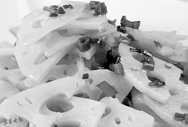 民俗流傳中,人們借助于蓮藕的特征和諧音賦予了它更多的吉祥內(nèi)容。古太原地區(qū)的傳統(tǒng)筵席“八碟八碗”中,有一款坐底大菜——涼拌蓮菜(本地人叫藕根大片)。之所以如此安排,完全就是沿用了諧音吉祥的民俗習(xí)慣?!芭骸迸c“偶”諧音,藕根大片占個(gè)“偶”,有佳偶天生的美好寓意,故而成了八大碗中必不可少的一道菜品。“蓮菜”又諧音“連財(cái)”,意思是菜上完了,還有扯不斷、沒完沒了的財(cái)運(yùn),八碗帶財(cái)一起來。寓意如此美好,自然人人都滿意。