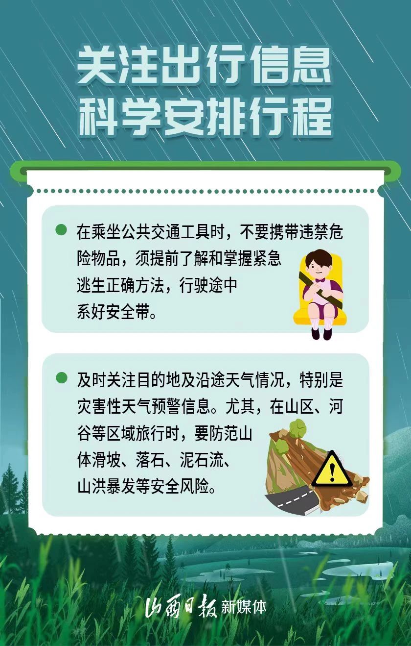 暑假,很多人開始規(guī)劃外出旅游行程。汛期,是強降雨、大風(fēng)、山洪等惡劣天氣多發(fā)期。暑假+汛期,省文旅廳發(fā)布出游提示,提醒廣大游客密切關(guān)注旅游安全,健康平安出游。