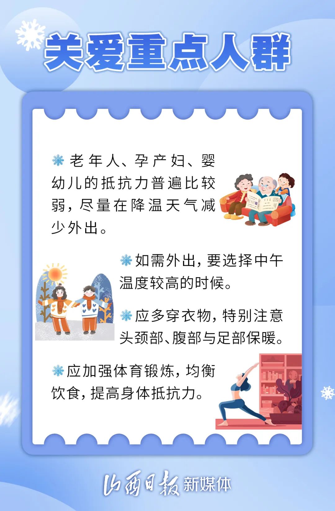 隨著大雪節(jié)氣的到來(lái),我省迎來(lái)了降雪。美麗的雪景,給人們帶來(lái)了歡樂和驚喜。然而,雪天也存在諸多隱患。下面這份健康提示請(qǐng)收好,助大家度過寒冷的冬季。