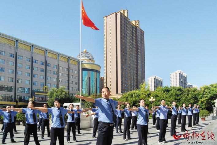 9月3日,市體育局在全市組織開展的“文明忻州、全民健身”系列活動拉開了帷幕。圖為作為我市首批健身示范單位的市公安局、市人民檢察院、市中級人民法院正在組織全體干警職工做工間操。(張存良 攝影報道)