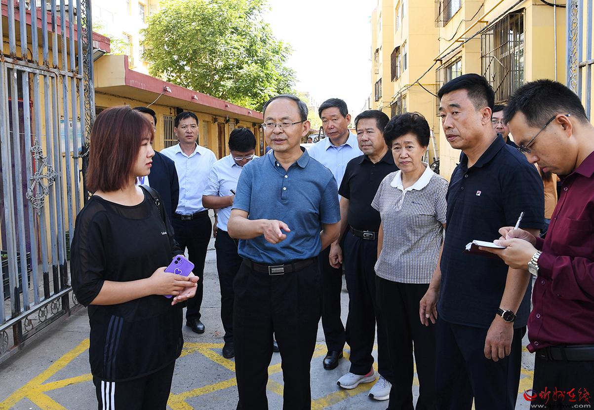 師院西路既屬于背街小巷,又是老舊小區(qū)集中區(qū)域。鄭連生一行在督查師院西路環(huán)境衛(wèi)生、車輛停放秩序等情況的同時,還隨機進入小區(qū)檢查文明城市創(chuàng)建工作落實情況。他要求,要以創(chuàng)建全國文明城市為契機,進一步查漏補缺,推進背街小巷、老舊小區(qū)的環(huán)境整治,加大設(shè)施配置、標線施劃、衛(wèi)生清潔等工作的力度,做到所有車輛進庫進位、環(huán)境整潔、秩序井然,不斷提升居民生活質(zhì)量。