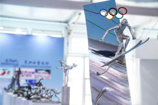 △北京奧林匹克公園中軸景觀大道室外展館A館內(nèi)陳列的冬季運(yùn)動雕塑