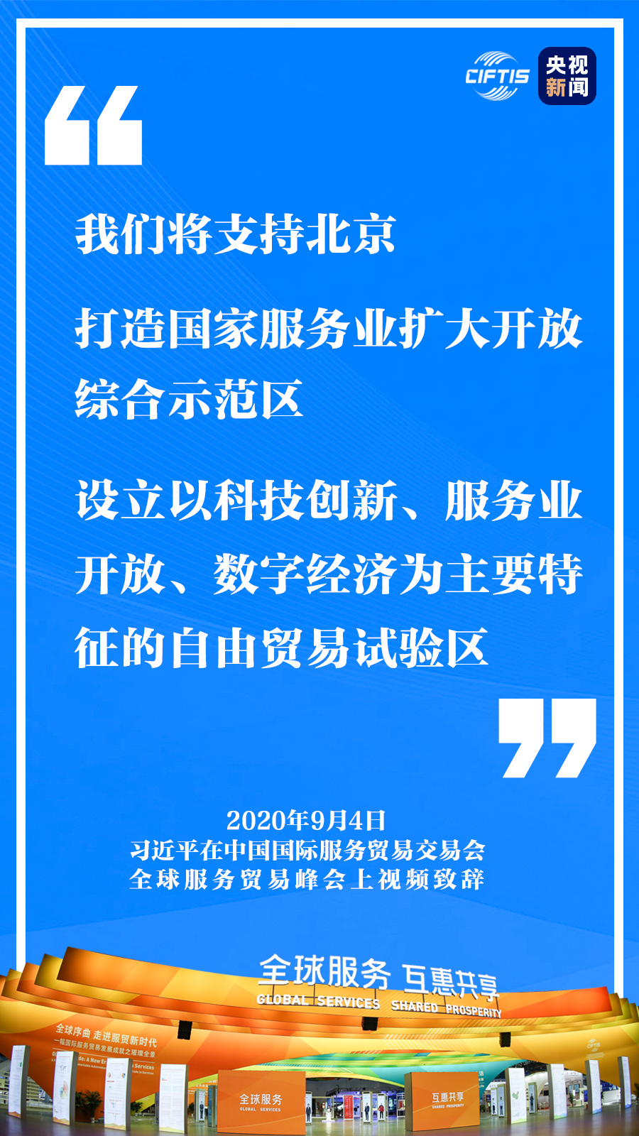 中國克服重重困難,舉辦這樣一場重大國際經(jīng)貿(mào)活動,就是要同大家攜手努力、共克時艱,共同促進全球服務(wù)貿(mào)易發(fā)展繁榮,推動世界經(jīng)濟盡快復(fù)蘇。