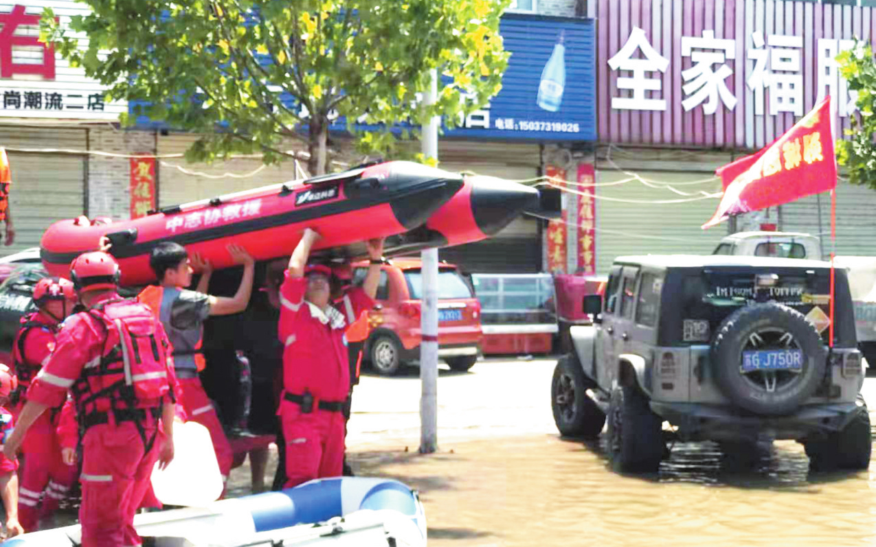 為完成好這次救援任務,該服務隊準備了救生衣、救生圈、發(fā)電機、迷霧機、救援繩、急救箱、防疫物品等充足的保障物資。24日一早,服務隊抵達鄭州,之后他們在主管部門統(tǒng)一指揮下展開積極救援。 (王國棟 張蓉 攝影報道)