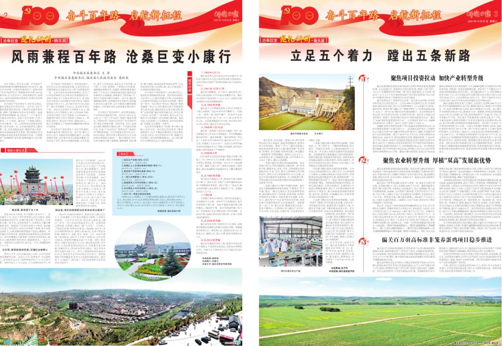 穿歲月峰頭,伴歷史云煙。在中國共產(chǎn)黨披荊斬棘風雨兼程砥礪前行的100年中,偏關縣在省委、市委的堅強領導下,按照省委“四為四高兩同步”思路要求和市委“336”戰(zhàn)略布局,以人民為中心,堅持舉旗定向、迎難而上,脫貧攻堅取得全面勝利,經(jīng)濟社會發(fā)展取得歷史性成效。