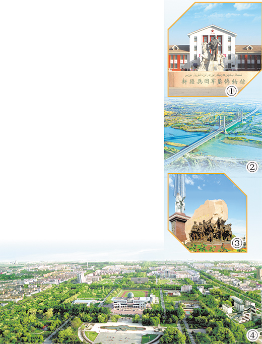 石河子市被譽為“共和國軍墾第一城”。第一代老軍墾陸振歐回憶當時的情景,仍記憶猶新:“那時只有車馬店、賣馕的幾戶人家,除了北面蘆葦?shù)?,到處是荒灘戈壁?!钡谝淮鴪F人喝鹽堿水、睡“地窩子”,人拉肩扛、挖渠引水、改造葦湖、開墾荒地,在荒無人煙的大漠之邊打造了一座現(xiàn)代化新城。如今,石河子市碧水繞城、綠意盎然、鳥語花香,綠蔭掩映座座現(xiàn)代化廠房。石河子崛起為新疆重要工業(yè)基地,享有“戈壁明珠”的美名?!笆幼訌囊粡埌准埰鸺?,發(fā)展到現(xiàn)在,靠的就是兵團人艱苦奮斗、開拓創(chuàng)新的精神?!标懻駳W感慨地說。
