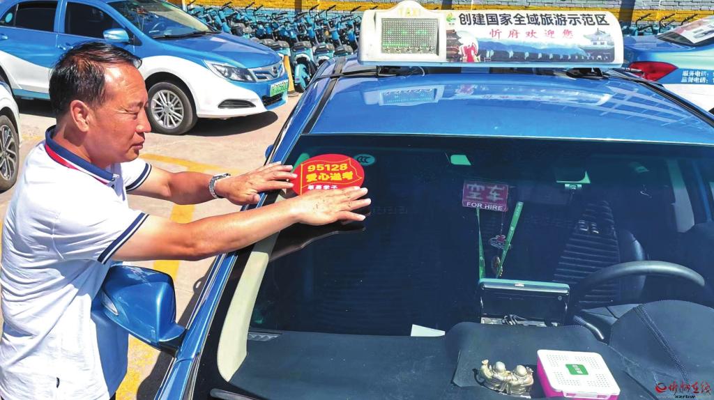 高考前夕,出租車司機在前擋風(fēng)玻璃上粘貼愛心送考標(biāo)識。 張林泉攝