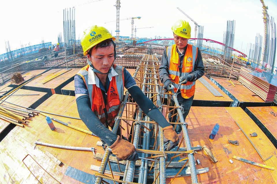 10月1日,建筑工人正在運(yùn)城市會(huì)展中心項(xiàng)目建設(shè)工地做基礎(chǔ)施工。國慶長假期間,承建總建筑面積82萬平方米會(huì)展中心項(xiàng)目的運(yùn)城市建工集團(tuán)200余名建筑工人,堅(jiān)守施工一線,嚴(yán)格按照時(shí)間表、路線圖,采取人休機(jī)不停的晝夜輪班制施工,確保重點(diǎn)項(xiàng)目的有序推進(jìn)。(姜樺攝)