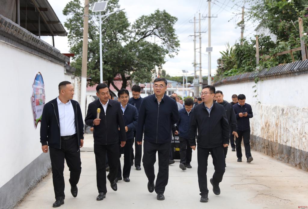 在五寨縣硯城鎮(zhèn)周家村觀摩檢查鄉(xiāng)村振興示范村創(chuàng)建情況。范濤 攝