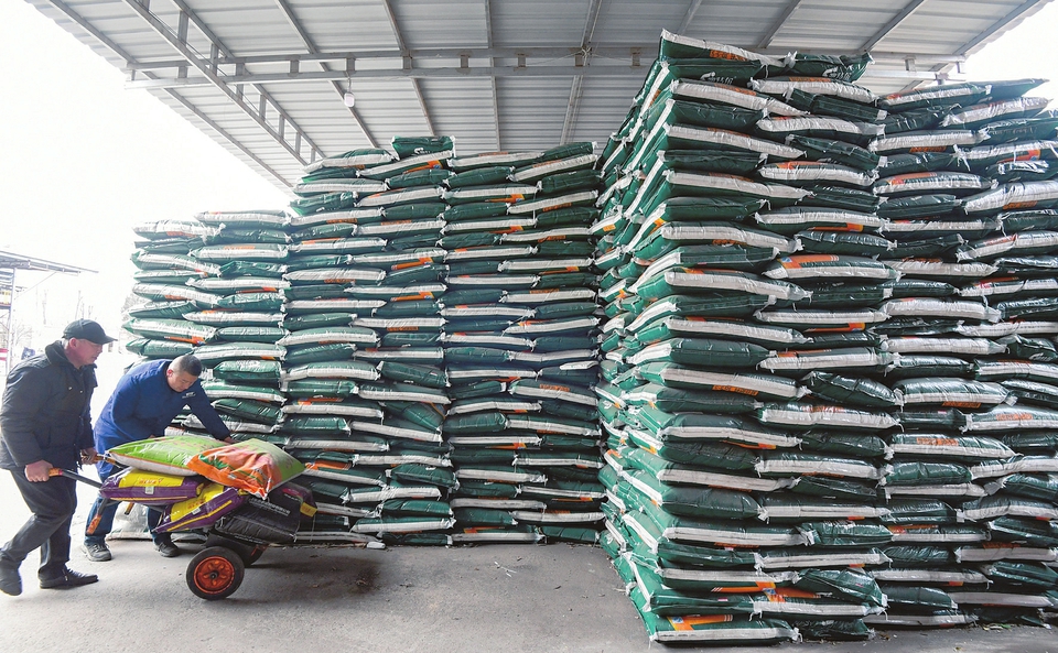 2月24日,長子縣清風(fēng)農(nóng)資連鎖有限責(zé)任公司院內(nèi),工人在搬運(yùn)化肥。隨著春耕生產(chǎn)臨近,該公司開通綠色通道,24小時(shí)不間斷作業(yè),加快化肥裝卸、轉(zhuǎn)運(yùn),全力保障春耕備耕。梁棟攝
