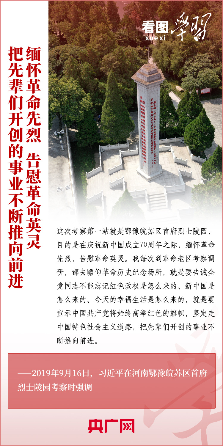 緬懷革命前輩,告慰先烈英靈。黨的十八大以來,習(xí)近平總書記多次在重大活動、赴地方調(diào)研時,或深情追憶革命前輩、英雄烈士,或向革命紀念場館禮敬鮮花、關(guān)心看望英烈親屬??倳浢銊畲蠹乙^承革命先烈遺志,把他們流血犧牲打下的紅色江山守護好、建設(shè)好,以實現(xiàn)中華民族偉大復(fù)興來告慰革命前輩和先烈。