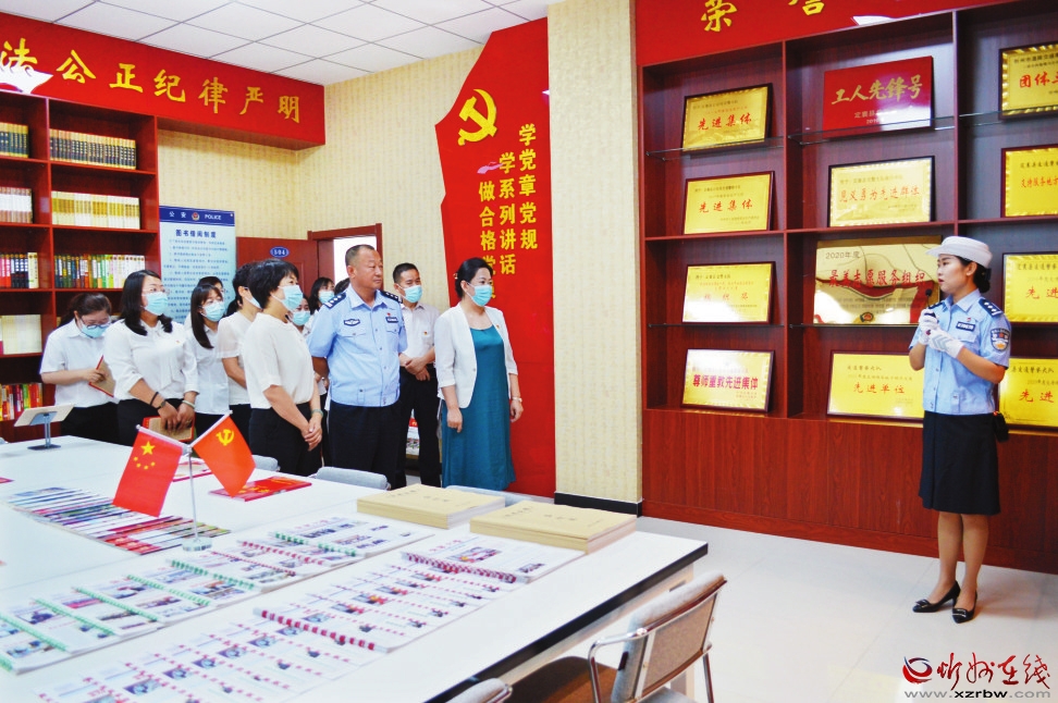 立足崗位,對標(biāo)先進(jìn)。7月1日,市婦聯(lián)黨組組織全體黨員干部前往“山西省巾幗文明崗”“省級青年文明號”等榮譽稱號獲得單位——定襄縣公安局交警大隊觀摩學(xué)習(xí)。 本報通訊員攝