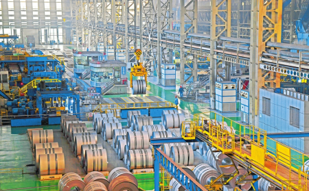 一卷卷鋼材成品排列整齊,3臺(tái)軋機(jī)隆隆作響,操作機(jī)器的人卻難覓蹤影?!艾F(xiàn)在車間自動(dòng)化的程度非常高,幾乎大部分的工作都由機(jī)器完成?!?號(hào)軋機(jī)前,安全生產(chǎn)部部長(zhǎng)房旭回答著記者的疑問,“你看這臺(tái)軋機(jī),它的啟動(dòng)和暫停其實(shí)并不在這里操作,而是在旁邊的智慧化集中控制中心實(shí)現(xiàn)的。工作人員在操作的同時(shí),那邊的系統(tǒng)還能同步記錄下實(shí)時(shí)的數(shù)據(jù),為后續(xù)的工序優(yōu)化和材料研發(fā)提供支持。”房旭所說的智慧化集中控制中心,投用于去年10月,除了“一鍵啟?!保€實(shí)時(shí)記錄著整個(gè)車間的能源消耗和安全生產(chǎn)情況。