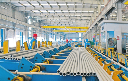 巨大的生產(chǎn)車(chē)間內(nèi),機(jī)器轟鳴,一根根坯料經(jīng)過(guò)穿孔、酸洗、拋光、冷軋等近40道工序,變成锃亮堅(jiān)固的不銹鋼管,發(fā)往國(guó)內(nèi)外企業(yè),成為電站、鐵路、新能源、油氣開(kāi)采等行業(yè)的重要材料。在山西太鋼不銹鋼鋼管有限公司,一系列特色管材產(chǎn)品實(shí)現(xiàn)了在重大裝備上的突破性應(yīng)用,提高了太鋼鋼管產(chǎn)品的美譽(yù)度和競(jìng)爭(zhēng)力。