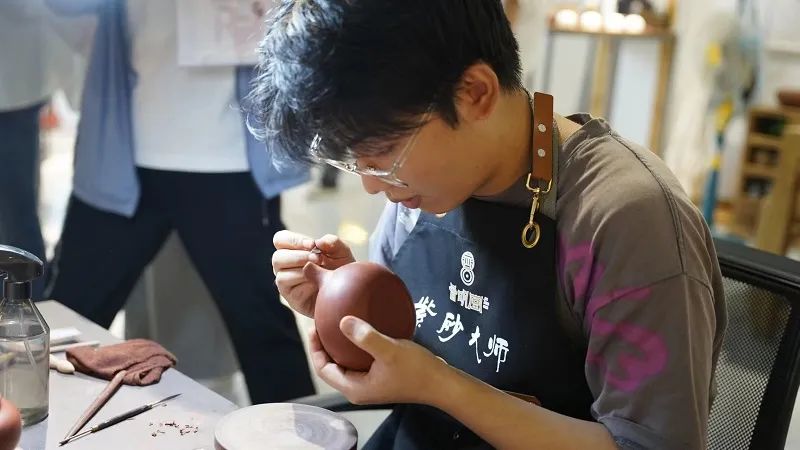 在砂器(紫砂)文化示范區(qū)的山西晉明堂文化科技有限公司(以下簡稱晉明堂),一位年輕人正熟練地運(yùn)用各種工具給手里的紫砂壺進(jìn)行壺嘴部分的制作。他叫穆清,今年剛20歲出頭的他,耳濡目染父親對紫砂文化的熱愛,也對這一行業(yè)產(chǎn)生了濃厚的興趣,決心將平定紫砂文化傳承發(fā)揚(yáng)下去。