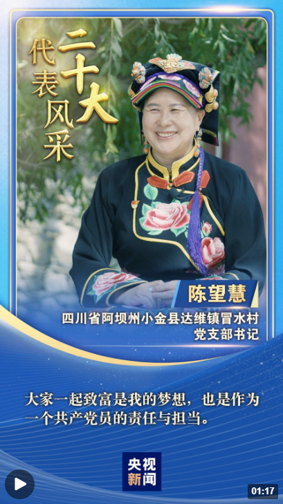 “二十大代表風采”一起來認識四川省阿壩州小金縣達維鎮(zhèn)冒水村黨支部書記陳望慧。