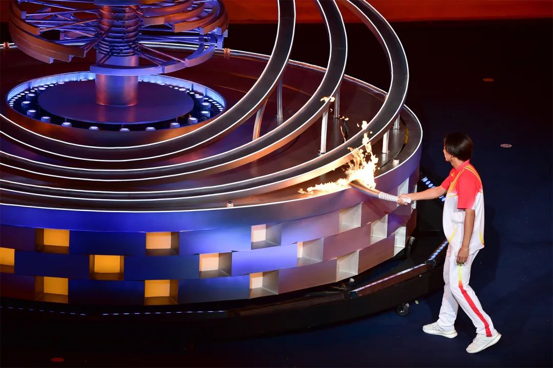 開幕式之夜,最為激動(dòng)人心的就是點(diǎn)火時(shí)刻。在射擊世界冠軍張益梵、鄉(xiāng)村干部王春、環(huán)衛(wèi)工人孫秀蘭、大國(guó)工匠官生花、公交司機(jī)馮冰依次傳遞過后,火炬來(lái)到了最后一棒火炬手、北京冬奧會(huì)冠軍蘇翊鳴的手中。主火炬塔點(diǎn)火裝置以山西民俗“旺火”為設(shè)計(jì)依據(jù),采用清潔能源“微火”點(diǎn)燃的方式。蘇翊鳴手持火炬,在萬(wàn)眾矚目之下,以“微火”點(diǎn)“旺火”,歷史、現(xiàn)在與未來(lái),在這一刻融匯賡續(xù)。