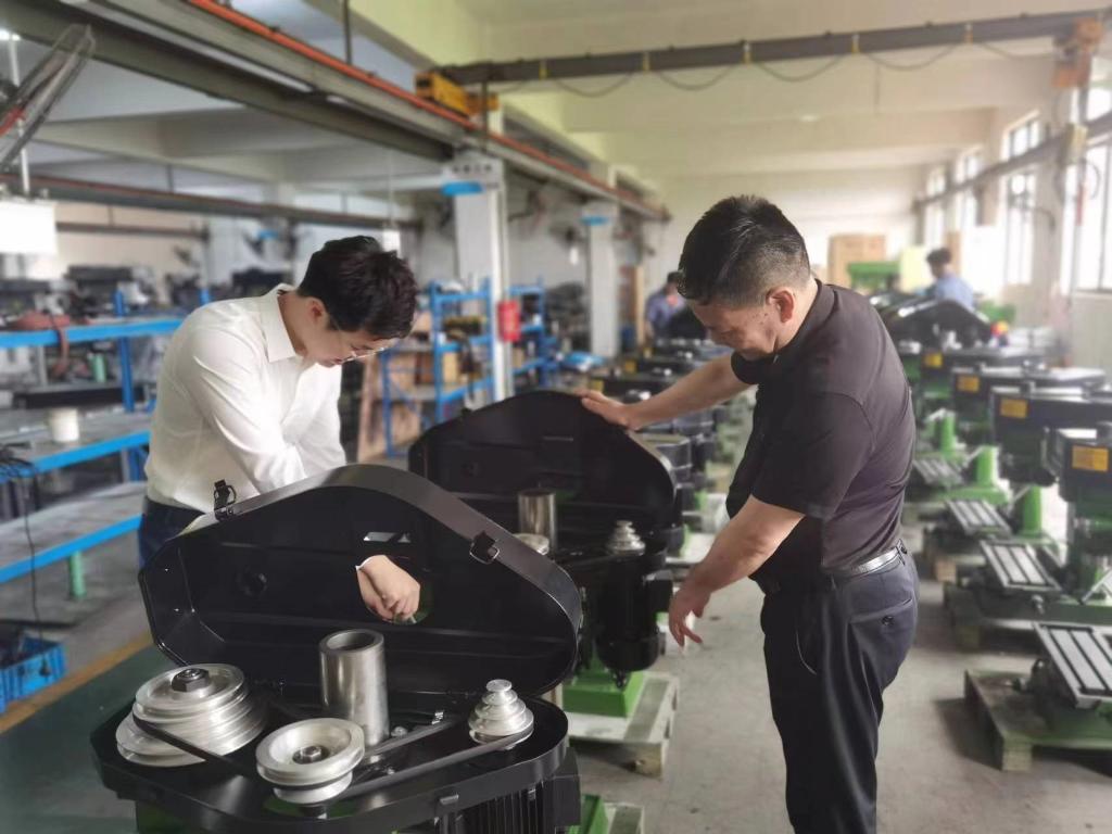 受疫情影響,2021年外貿(mào)企業(yè)訂單量隨著海運(yùn)放緩、海外需求下降而減少。生產(chǎn)閑下來(lái)了,但繆繼云和兒子繆帥濤對(duì)產(chǎn)品改良的思考沒(méi)有停止。在不斷調(diào)試臺(tái)鉆時(shí),他們發(fā)現(xiàn),調(diào)速必須動(dòng)手換皮帶,“為什么不能像調(diào)收音機(jī)一樣調(diào)動(dòng)速率呢?”兩人一商量,立即開(kāi)始畫(huà)草圖,接著去銀行貸款投入模具開(kāi)發(fā)。
