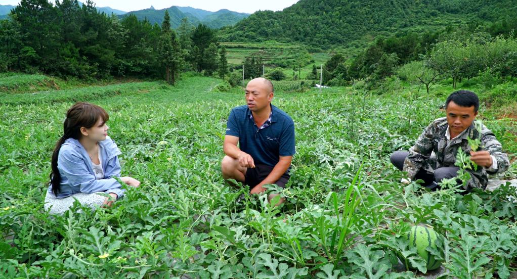 圖為貴陽市烏當區(qū)新堡鄉(xiāng)新堡村一農(nóng)場負責人林正福查看西瓜生長情況。(韋登亮 攝)