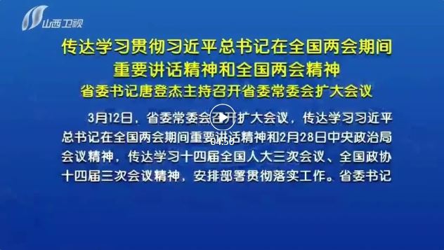 山西日報(bào)報(bào)道3月12日,省委常委會(huì)召開擴(kuò)大會(huì)議,傳達(dá)學(xué)習(xí)習(xí)近平總書記在全國兩會(huì)期間重要講話精神和2月28日中央政治局會(huì)議精神,傳達(dá)學(xué)習(xí)十四屆全國人大三次會(huì)議、全國政協(xié)十四屆三次會(huì)議精神,安排部署貫徹落實(shí)工作。省委書記唐登杰主持會(huì)議。