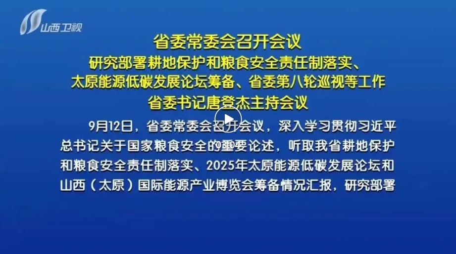 9月12日,省委常委會召開會議,深入學(xué)習(xí)貫徹習(xí)近平總書記關(guān)于國家糧食安全的重要論述,聽取我省耕地保護(hù)和糧食安全責(zé)任制落實、2025年太原能源低碳發(fā)展論壇和山西(太原)國際能源產(chǎn)業(yè)博覽會籌備情況匯報,研究部署十二屆省委第八輪巡視工作。省委書記唐登杰主持會議。