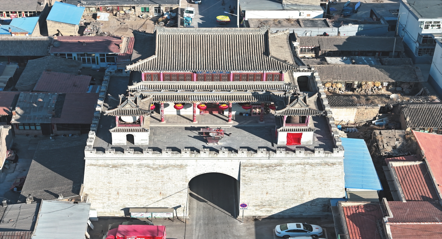 據(jù)重修鼓樓碑和《道光、光緒繁峙縣志》記載,該鼓樓始建于明代萬(wàn)歷十四年(1586),清康熙二十七年(1688)維修,清乾隆二十三年(1758)增設(shè)鐘樓、鼓樓,光緒二年(1878)重修,現(xiàn)存建筑為明、清建筑。城臺(tái)呈方形,條石筑基,青磚鋪面,內(nèi)為夯土。臺(tái)基中設(shè)拱券門(mén)洞,南北貫通。城樓內(nèi)供奉文昌神,又稱(chēng)為文昌閣,面寬五間,進(jìn)深四椽,七檁前后廊構(gòu)架,二層三檐歇山頂,上層斗拱一斗二升交麻葉,下層明間設(shè)拱券門(mén),次間圓形窗,四角施通天柱,內(nèi)設(shè)樓梯,可登二層。