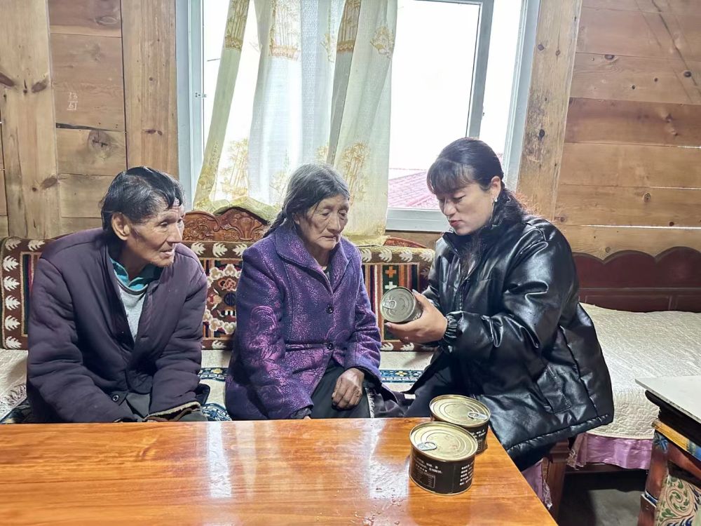 羅布央宗(右)在西藏墨脫縣墨脫村看望村民(2023年2月攝)。新華社發(fā)