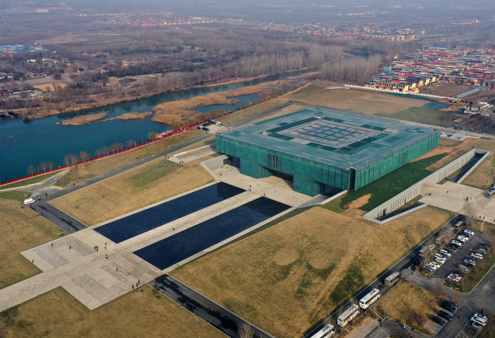 這是2024年2月26日拍攝的位于河南省安陽市的殷墟博物館新館(無人機照片)。新華社記者 李安 攝