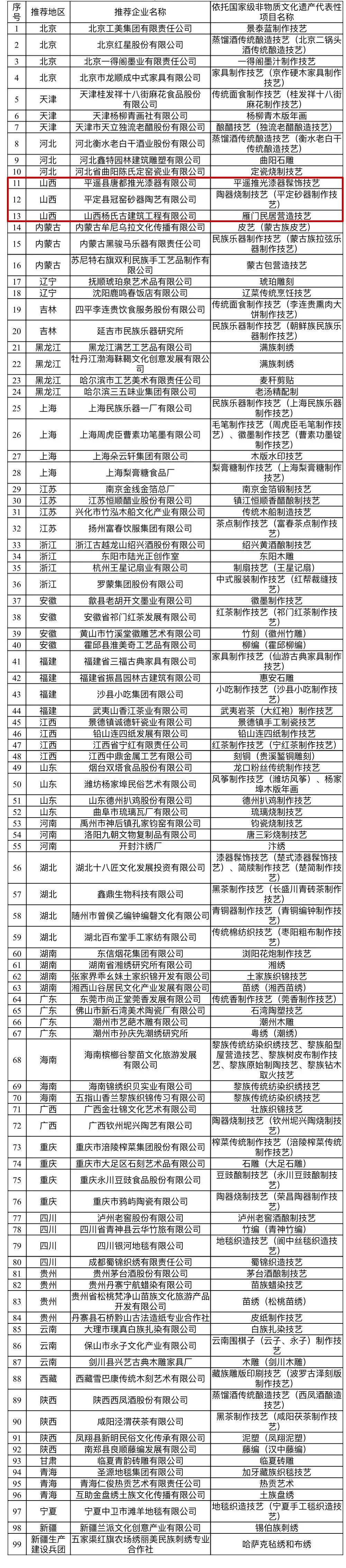 根據(jù)《“十四五”非物質(zhì)文化遺產(chǎn)保護(hù)規(guī)劃》和文化和旅游部等十部門《關(guān)于推動(dòng)傳統(tǒng)工藝高質(zhì)量傳承發(fā)展的通知》的工作要求,在各地推薦的基礎(chǔ)上,經(jīng)過(guò)專家評(píng)審、實(shí)地考察和社會(huì)公示等程序,文化和旅游部認(rèn)定99家企業(yè)和單位為“2023—2025年國(guó)家級(jí)非物質(zhì)文化遺產(chǎn)生產(chǎn)性保護(hù)示范基地”,現(xiàn)予公布。