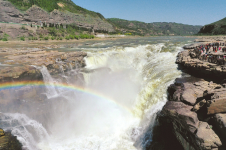 洶涌奔流的黃河水跌入龍槽,白浪翻滾,聲若雷鳴。一進(jìn)入黃河壺口瀑布旅游區(qū),來自河北的游客王鑫就被“清流飛瀑”奇特景觀吸引?!疤鸷沉?!奔騰向前百折不回的黃河,讓人頓生強烈的民族自豪感。”她連連贊嘆。